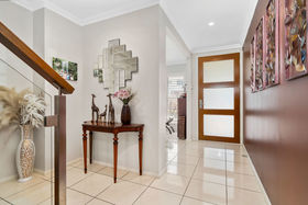 Downstairs features a 5th bedroom or study, a full bathroom, formal lounge and dining, sitting room, everyday dining, and a cinema room for the ultimate family entertainment. The solid timber staircase leads to the upper level, where you'll find timber floors, two bathrooms, and a luxurious main bedroom complete with ensuite and parents' retreat.