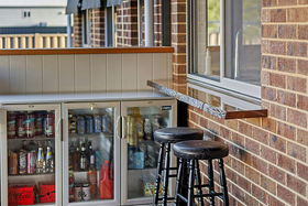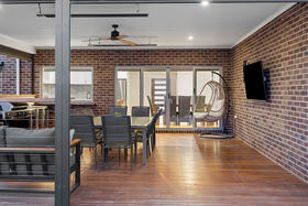 - Step outside and you'll find a fantastic undercover outdoor entertaining area, expanding over spotted gum decking. Perfect for gatherings year-round, overlooking the established backyard. Fitted with automatic blinds and bar heaters.