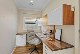 Step inside and discover a beautifully appointed home, boasting three generous size bedrooms plus a separate study. The light filled interiors feature two elegant living areas enhanced by raked feature ceiling and highlight windows that invite in natural light, creating a warm and welcoming atmosphere.