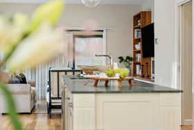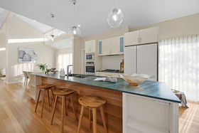 - The quality kitchen is the centrepiece of the main living space with stone bench tops, double oven and built in microwave.